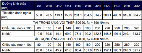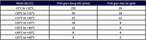 - Bước 5: Chờ thời gian đông kết keo theo bảng dưới đây là có thể lắp được tải: