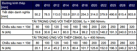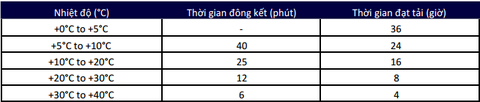 - Bước 5: Chờ thời gian đông kết keo theo bảng dưới đây là có thể lắp được tải: