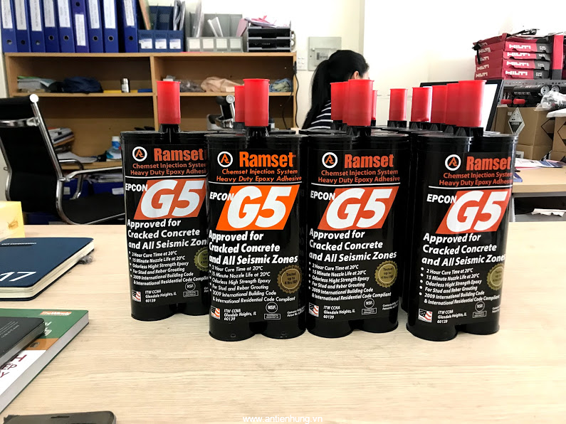 Keo Ramset Epcon G5 là loại keo epoxy bao gồm hai thành phần cường độ cao. Đây là một dạng matit keo cấy thép chuyên dụng, phù hợp sử dụng trong trường hợp lỗ khoan khô, bị ngập nước hay môi trường ẩm ướt, giúp cấy cốt thép cùng với thanh ren vào một số loại vật liệu cứng khác như cấy thép vào đá tự nhiên, bê tông,…. Đồng thời, các lỗ khoan của máy khoan bê tông bình thường hay máy khoan để lấy lõi ống kim cương đều có thể dùng loại keo chuyên dụng này để giúp quá trình đông cứng nhanh hơn, đẩy nhanh tiến độ thi công cho công trình.
