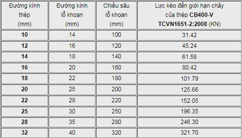 - Bước 1: Khoan tạo lỗ theo đường kính và chiều sâu như bên dưới (tùy từng dự án có thể khoan sâu hơn)