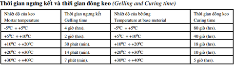 - Bước 5: Chờ thời gian đông kết keo theo bảng dưới đây là có thể lắp được tải: